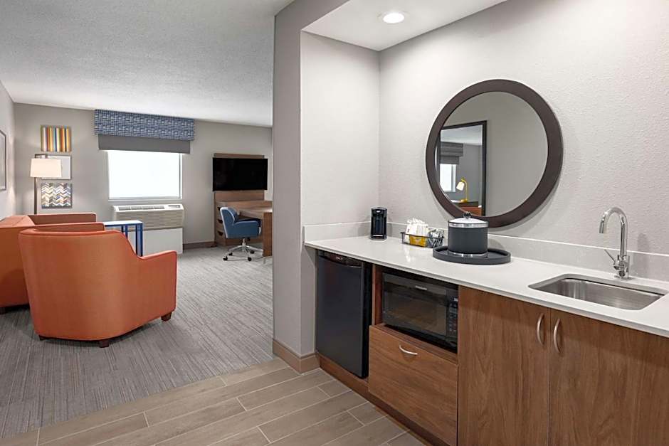 Whirlpool, soft seating, desk, 37-inch TV, free WiFi Relax in this king room with a clean and fresh Hampton bed® and whirlpool tub. Sink into the soft seating and watch movies on the 37-inch HDTV. Surf the web with free WiFi. Catch up with work at the desk with ergonomic chair. Refresh your senses in the bathroom, complete with shower, large dressing area and plush towels. Enjoy the convenience of having a coffeemaker in the room. This room type does not have a mini-fridge or a microwave.